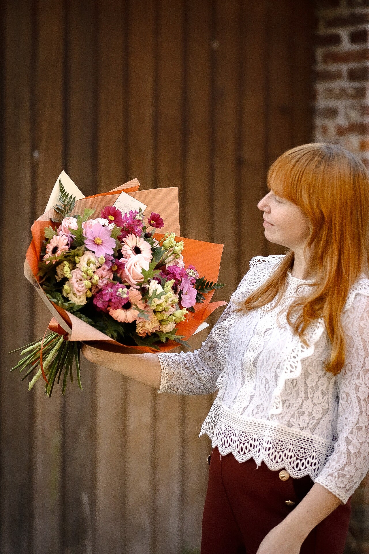Gemengd boeket met roze bloemen.